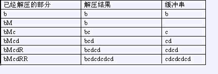 有M,则从串的开始算起)开始的解压结果(称为缓冲串)。 bcdcdcdcd可以压缩为bMcdRR,下面是解压缩的过程