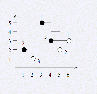 行,每行两个数xj'和yj'(0<=xj',yj'<=100000),表示中转站的坐标。