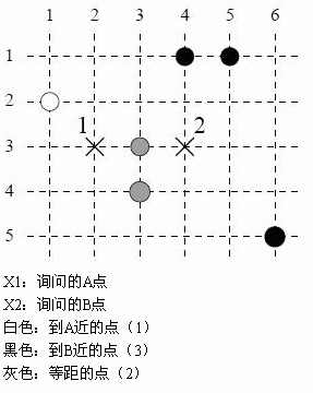 平面上有z个点,给你p个形如 p1(x1,y1),p2(x2,y2) 的询问,要你求出z个点中离p1更近的点,离p2更近的点,与p1和p2的距离相等的点各有多少个。这里的距离指的是曼哈顿距离,即x坐标之差的绝对值加上y坐标之差的绝对值。