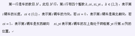 在一个6×6的正方形网格中停靠着若干辆车。其中的一号车是学校的班车,长度为2,宽度为1。其它车的宽度为1,长度为2或3。每辆车的朝向是南北向或东西向。我们可以使某辆车沿着它的朝向移动一步,前提是没有开出网格或者有别的车阻拦。我们的目的是使一号车从网格的第三行六列右侧的出口离开,在这基础上还要使所有车移动的步数之和最小。车的数目小于等于16。