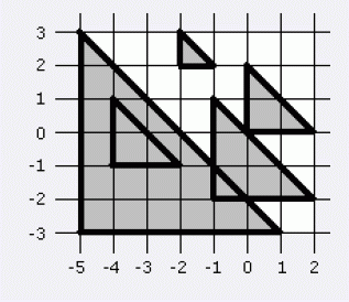 给出N个等腰三角形,每个三角由x,y,m三个参数来确定,这三个参数确定三角形的三个点分别为 (x;y), (x+m;y) and (x; y+m)