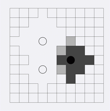 给出一个宽为W,高为H的矩形 。 在它上面有两种点,black及white. 每个点都有自己的辐射范围。对于其它的点如果它受到白点的辐射多于黑色的,则为 白点,反之亦然,如果相同的话则中立. 现给出白点及黑色的坐标及各自的辐射范围,问最后白色点一共有多少个,黑色点共有多少个 。