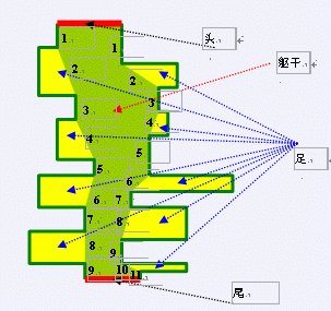 能退化成三角形(即底边的长度均大于零),躯干两侧足的数目可以不一样。(如下图,左边有4条足,右边有5条