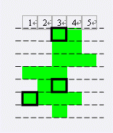 剖分成n条宽度为1的横条,每个横条最左边一格的x坐标设为Li,最右一格的的x坐标设为Ri。则(n,L1,L2,..,Ln,R