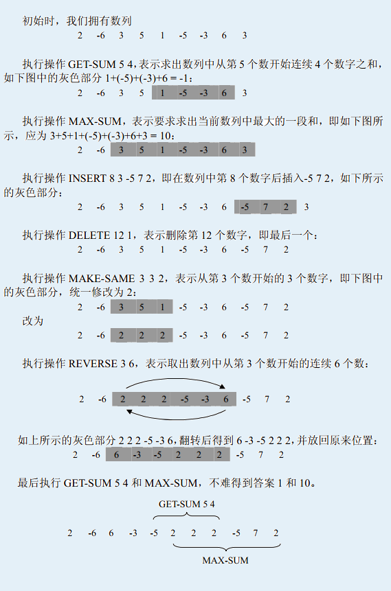 对于输入数据中的GET-SUM和MAX-SUM操作,向输出文件依次打印结果,每个答案(数字)占一行。