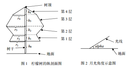 第1行包含一个整数n和一个实数alpha,表示柠檬树的层数和月亮的光线与地面夹角(单位为弧度)。