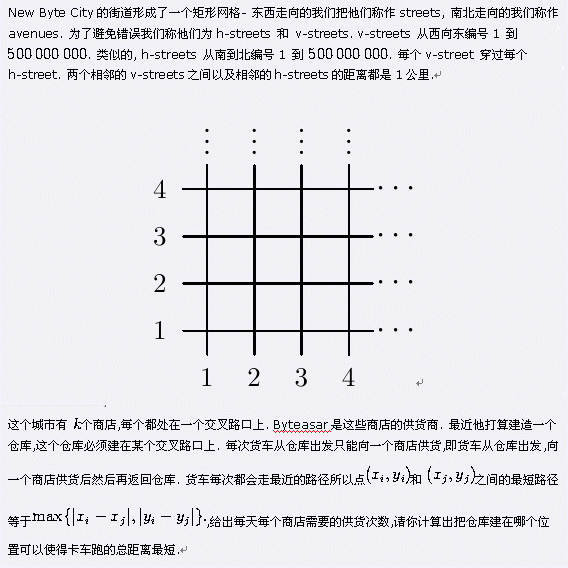 两个整数表示最优建造位置的坐标,如果有多个,输出任意一个.