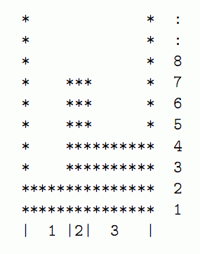 输入对应了题目中给出的例子,一共有3个平台,FJ选定的注水点在最低的