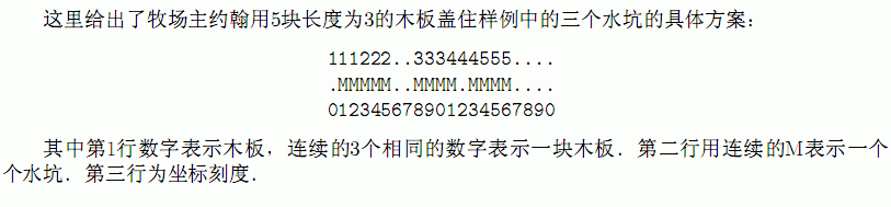 * Line 1: Two space-separated integers: N and L * Lines 2..N+1: Line i+1 contains two space-separated integers: s_i and e_i (0 <= s_i < e_i <= 1,000,000,000) that specify the start and end points of a mud pool along the road. The mud pools will not overlap. These numbers specify points, so a mud pool from 35 to 39 can be covered by a single board of length 4. Mud pools at (3,6) and (6,9) are not considered to overlap.