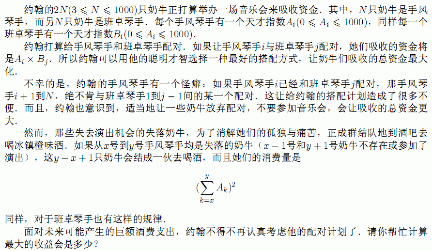 3 1 1 5 5 1 1 INPUT DETAILS: There are 6 cows: 3 accordionists and 3 banjoists. The accordionists have talent levels (1, 1, 5), and the banjoists have talent levels (5, 1, 1).