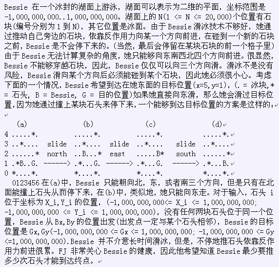 * 第一行: 一个整数表示Bessie至少要推多少次石头才能够到达终点