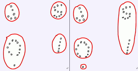 聪聪研究发现,荒岛野人总是过着群居的生活,但是,并不是整个荒岛上的所有野人都属于同一个部落,野人们总是拉帮结派形成属于自己的部落,不同的部落之间则经常发生争斗。只是,这一切都成为谜团了——聪聪根本就不知道部落究竟是如何分布的。 不过好消息是,聪聪得到了一份荒岛的地图。地图上标注了N个野人居住的地点(可以看作是平面上的坐标)。我们知道,同一个部落的野人总是生活在附近。我们把两个部落的距离,定义为部落中距离最近的那两个居住点的距离。聪聪还获得了一个有意义的信息——这些野人总共被分为了K个部落!这真是个好消息。聪聪希望从这些信息里挖掘出所有部落的详细信息。他正在尝试这样一种算法: 对于任意一种部落划分的方法,都能够求出两个部落之间的距离,聪聪希望求出一种部落划分的方法,使靠得最近的两个部落尽可能远离。 例如,下面的左图表示了一个好的划分,而右图则不是。请你编程帮助聪聪解决这个难题。