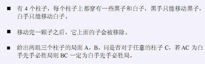 The first line of the partial configuration contains three numbers: n1, n2, n3 denoting the heights of the three towers of the partial configuration (0 <= n1, n2, n3 <= 50). The second line contains n1 letters (B or W) separated by spaces describing the first tower. The third line contains n2 letters separated by spaces describing the second tower. The fourth line contains n3 letters separated by spaces describing the third tower. A letter W denotes a white cube and the letter B denotes a black cube. Each tower is described in the bottom-to-top order.