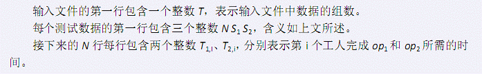 100%的数据中,1 ≤ T ≤ 7,1 ≤ N ≤ 100,1 ≤ S1,S2≤ 7,1 ≤ T1,i T2,i ≤ 1000000。