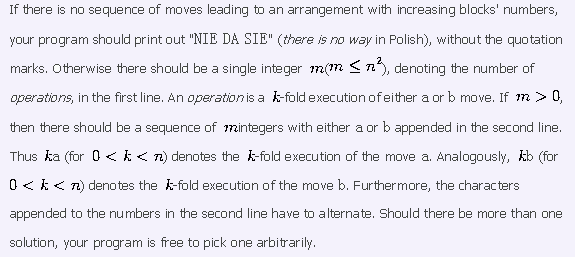 In the first line of the standard input there is a single integer ,(1<=N<=2000). In the second line there are integers from the range to , separated by single spaces. No number appears twice, and thus they represent the initial arrangement of the blocks. .