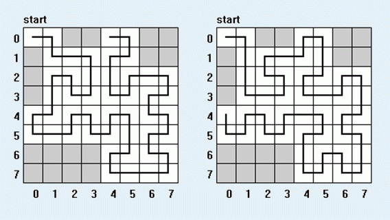 个小棋盘,蚂蚁总是走完其中的一个后再继续走下一个,也就是说,在进入一个小棋盘后,它必须把其中的所有点遍历以后才能走其他的点。
