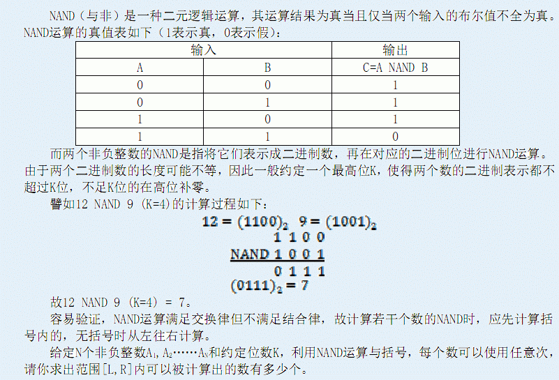 样例1中,(3 NAND 4) NADN (3 NAND 5) = 1,5 NAND 5 = 2,3和4直接可得。