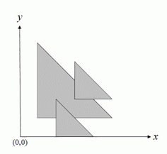 行每行有用空格隔开的三个非负整数, x, y , d,描述一个三角