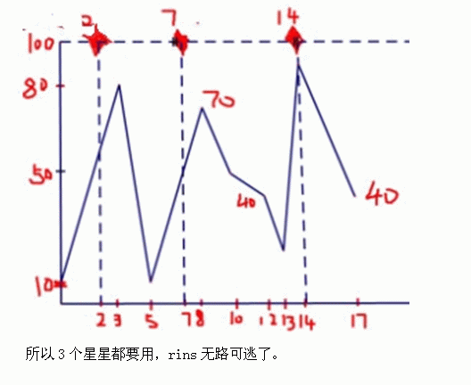 接下来n行每行两个数,表示山的转折点的纵坐标和横坐标,保证横坐标已从小到大排好