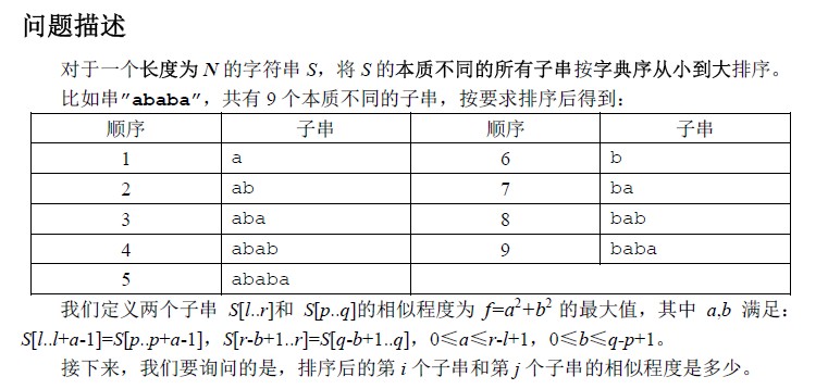 第1组询问:两个子串是“aba”,“ababa”。f = 32 + 32 = 18。