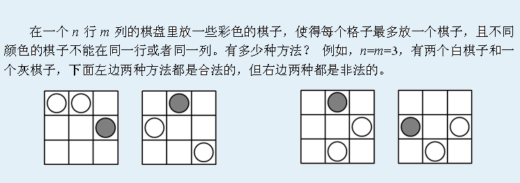 输入第一行为两个整数n, m, c,即行数、列数和棋子的颜色数。