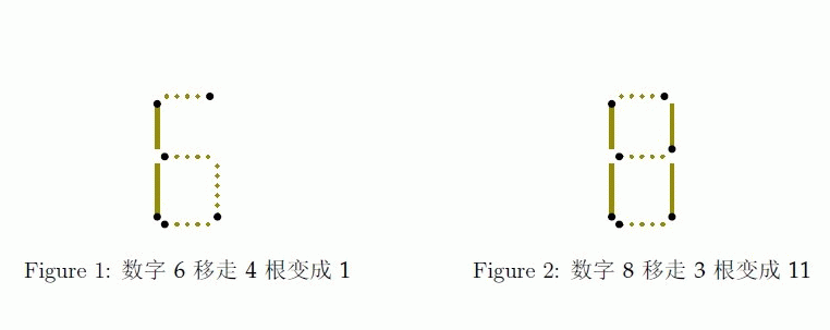 Fish是一条生活在海里的鱼,有一天他很无聊,于是他去捡了人类扔进海里的垃圾,打算用这些来玩些什么。他从捡回来的垃圾堆里找到了不少火柴棍,便把这些火柴棍拼成了一个长度为n 的十进制数,每个数字的拼法如下图所示