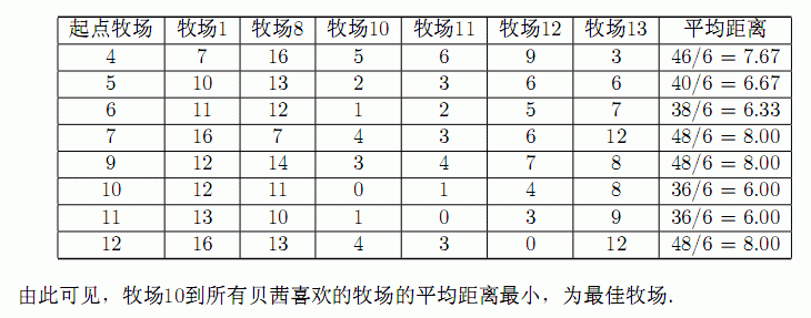 一个整数,满足题目要求的最佳牧场.如果有多个答案,输出编号最小的