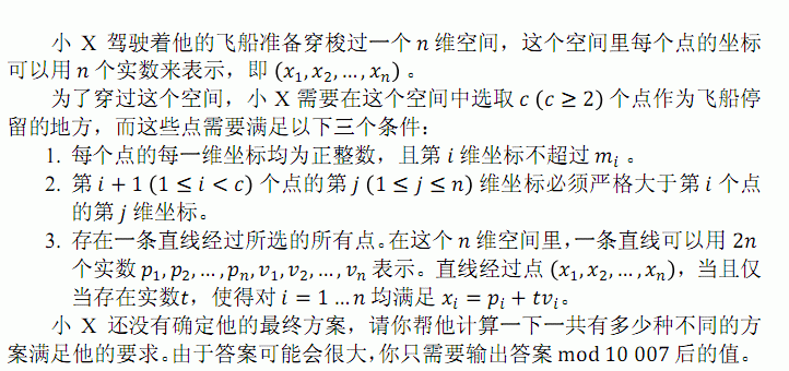 第一行包含一个正整数T,表示有T组数据求解 每组数据包含两行,第一行包含两个正整数N,C(c>=2),分别表示空间的 维数和需要选择的暂停点个数 第二行包含N个正整数,依次表示M1,M2....Mn