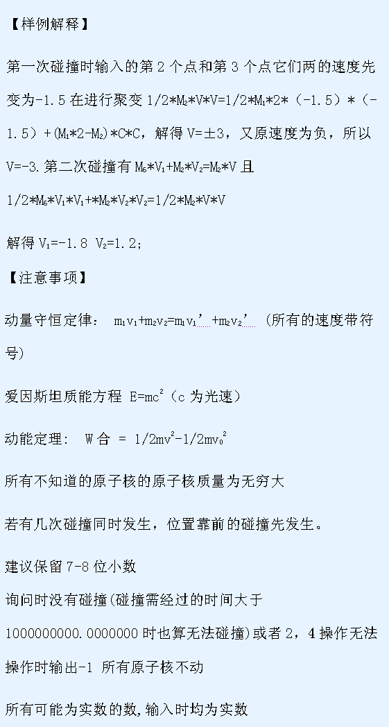 接下来n行每行3个数 表示原子核的序数,位置,和初速度。