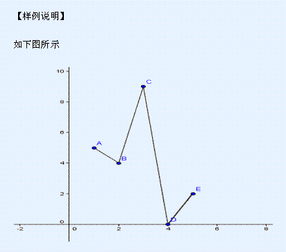 山由一个顶点集:A1,A2…An给定,保证Ai的x单调递增。我们将Ai和Ai+1之间连上线段,表示山的某一段。如下图所示: