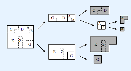 必须是从当前某个分出的块的边界开始切出一条线段来,不能转弯。