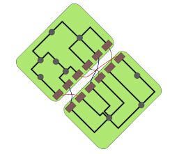 接下来n+k-1行描述Bitotronics卡的情况,每行两个节点的名字,表示这两个节点之间有电线相连。接下来一行为空行。