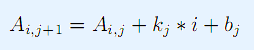 第一行两个整数N,M。 接下来一行N个数,第i个数表示Ai,1 接下来M-1行,每行两个整数,第i行表示ki,bi