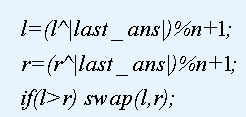其中^表示异或操作,last_ans表示上一次询问的答案,对于第一次询问,last_ans=0。