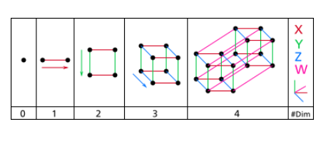 超立方体是立方体在高维空间内的拓展(其在 2 维情况下退化为正方形,1
