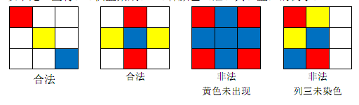 请你求出满足要求的不同的染色方案总数。只要存在一个位置的颜色不同,