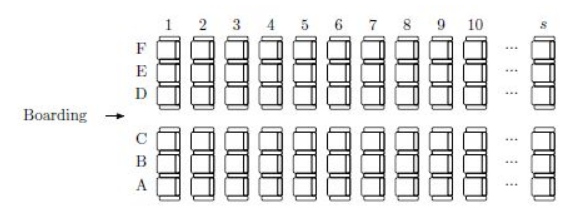 Peter是Byteland机场的经理。他的工作就是优化登机过程。Byteland的飞机有s排,编号1