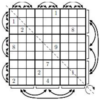 下面包含 n 个数独:P1,P2...Pn,每个数独用一个 9*9 的方阵表示,1~9 表示有数字的