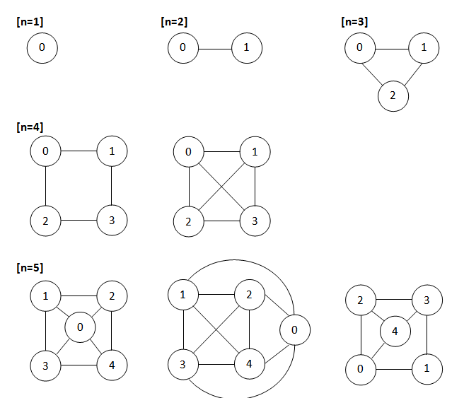 每组数据的第一行两个整数n,m。表示某个带标号的无向图有n个顶点0到n-1标号,m是边的数量。