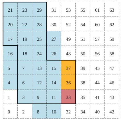 接下来m行,每行两个整数x_i,y_i(0<=x_i,y_i<=2^n),按逆时针依次表示多边形每个顶点的坐标。