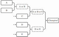 军,然后两个冠军再进行一次比赛,每一个输的选手都会被淘汰出局。当n不是2的幂的时候,后面的一些选手在第