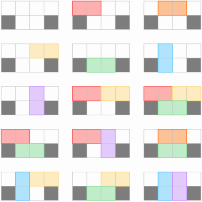 15种方案如下图所示,不同颜色代表不同运输机的投放位置