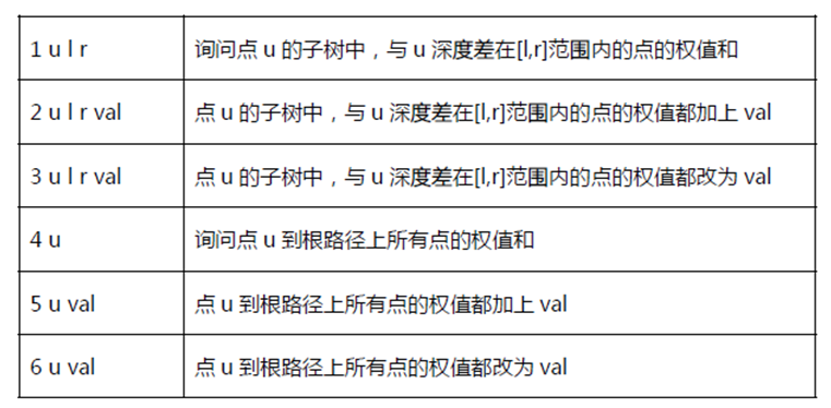 接下来m 行,每行表示一个操作,格式如题中表格所示